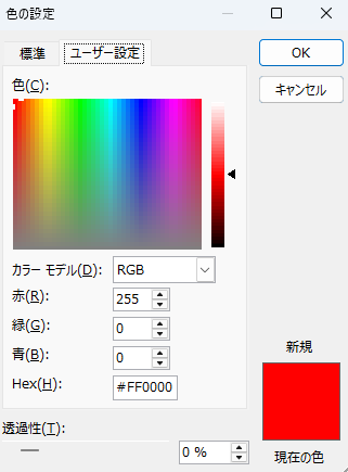 ところで上記のリンク先の記事で、「標準の赤」見直しの中にExcelが含まれてないのが気になって、確認してみたところ、Excelはなぜか「標準の赤」が(255,0,0)のままでした。他社製品との互換性の問題でしょうか。混乱の元のような気もしますが、気に留めておくとよいかもしれません。